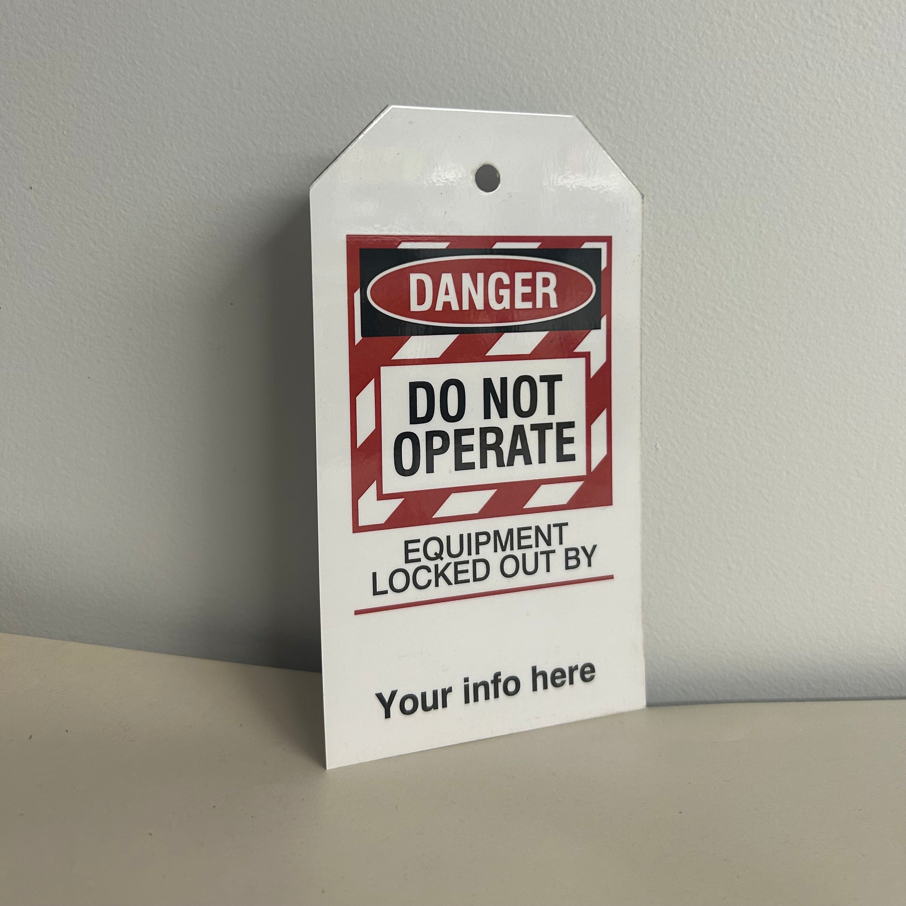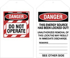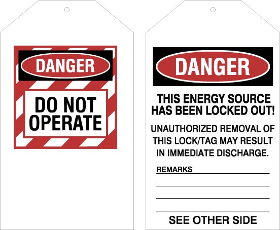 3.5"x5.5" Laminated Electrical Lockout Tags. Used to lockout dangerous equipment while technicians are working within the equipment.